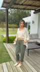 Pantalón de lino Olimpia con corte sastrero que combina elegancia y comodidad. Confeccionado en lino de calidad, presenta un tiro alto y pierna ancha que favorece la silueta. Cuenta con bolsillos funcionales y cintura elastizada en la parte trasera, permitiendo un ajuste versátil que se adapta a talles L y XL. Ideal para crear looks sofisticados en cualquier estación, este pantalón es una pieza versátil que trasciende tendencias.