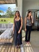Musculosa confeccionada en seda con cuello buche y breteles delgados que añaden refinamiento a cualquier estilismo. La tela posee una caída elegante y textura suave, característica de las fibras naturales de calidad. Medidas: contorno de busto de 90 cm con capacidad de extensión hasta 108 cm, garantizando adaptabilidad según tu morfología. Prenda versátil que funciona como base bajo prendas estructuradas o como protagonista en looks minimalistas, elevando la elegancia de tu colección.