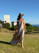 Vestido de corte generoso que prioriza tanto el confort como la elegancia. El escote en V profundo y detalles en calado, actúa como elemento visual que estiliza la figura y alarga proporcionalmente el cuello y los hombros. Permite libertad de movimiento sin comprometer la sofisticación, convirtiéndolo en una opción versátil para quienes valoran prendas que realcen naturalmente la silueta con un toque de distinción.